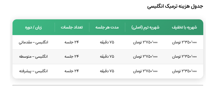 شهریه ترمیک زبان های کیان دانش1404